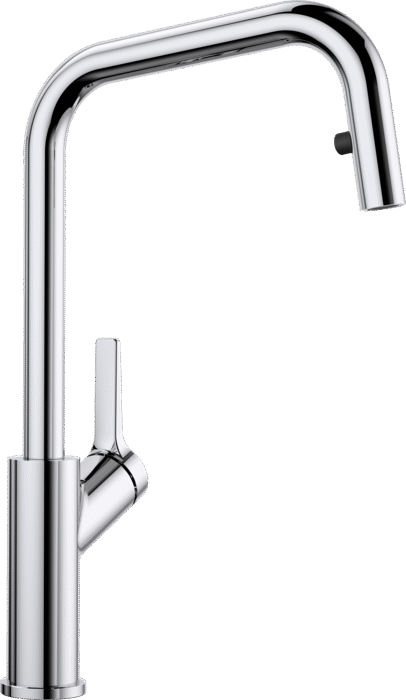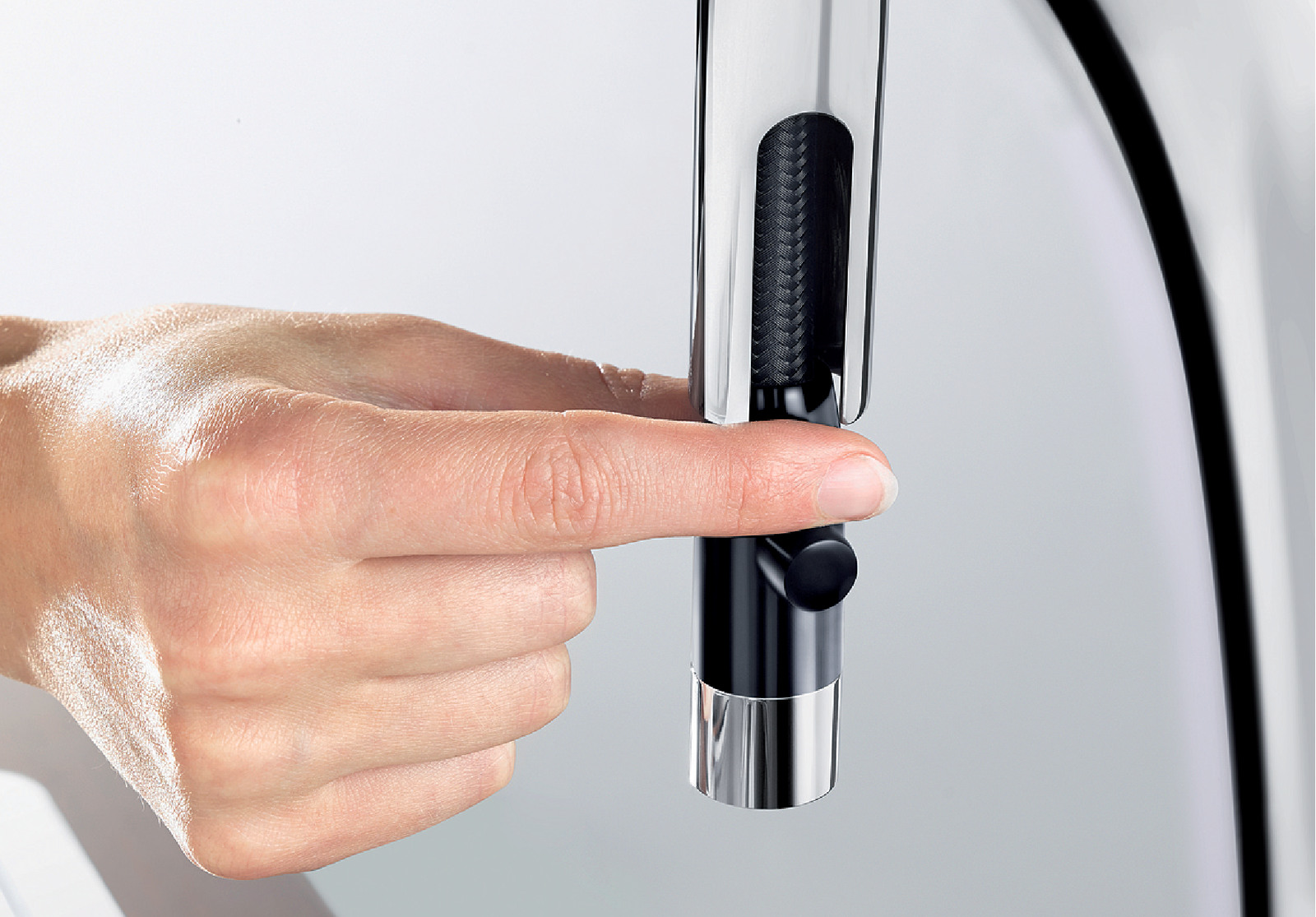 • Скрытый выдвигающийся шланг с направляющим выступом на обратной стороне излива